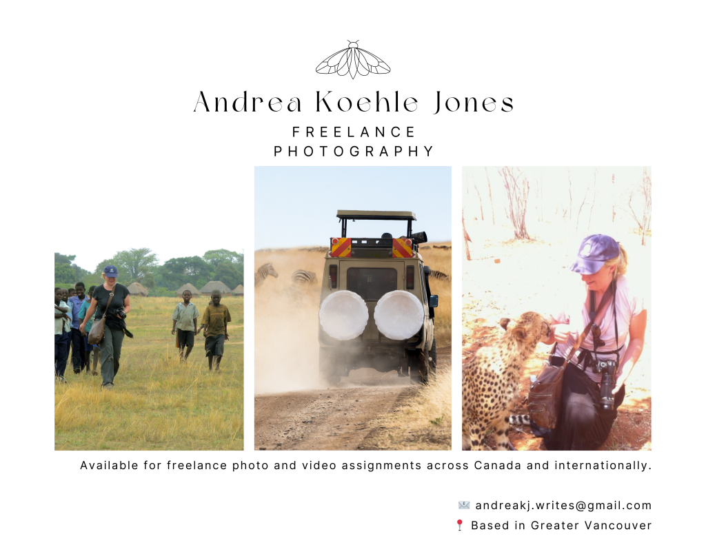 Andrea is an award-winning documentary producer, photographer, and videographer with experience in some of the world’s most challenging and remote locations—including Zambia, Syria, South Africa, and Canada’s Great Bear Rainforest.